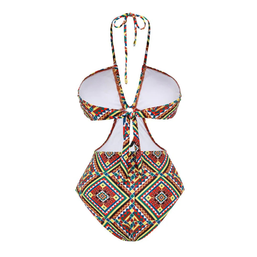 Geometric Design Monokini backless Tieup With Sarong Skirt By Sinderella