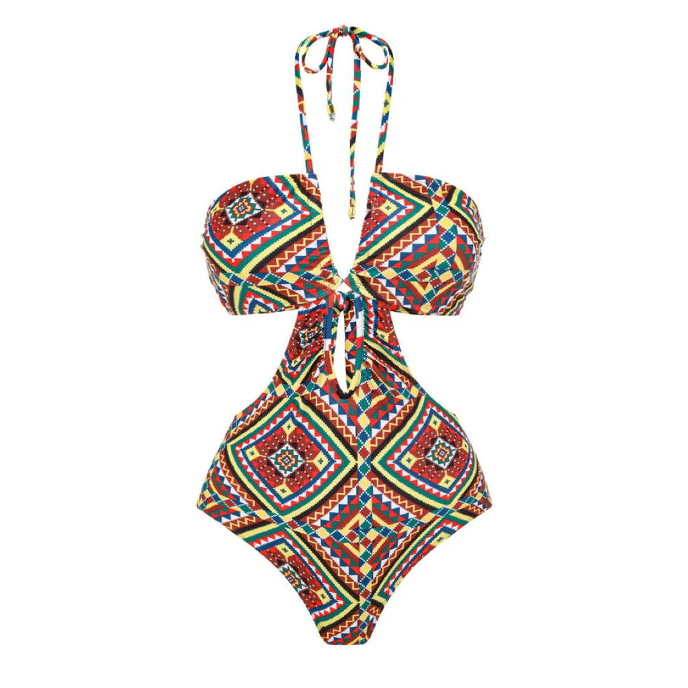 Expertly designed for maximum style and comfort, the Geometric Design Monokini backless Tieup With Sarong Skirt By Sinderella is the perfect addition to your beach attire. Stand out with the unique geometric design, while the backless tie-up and sarong skirt provide a flattering fit. Look and feel your best with this expertly crafted monokini.