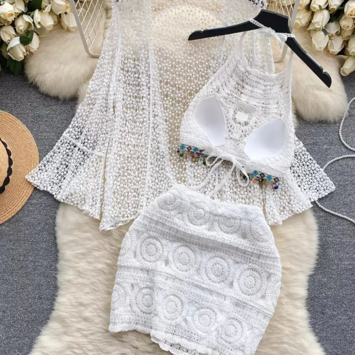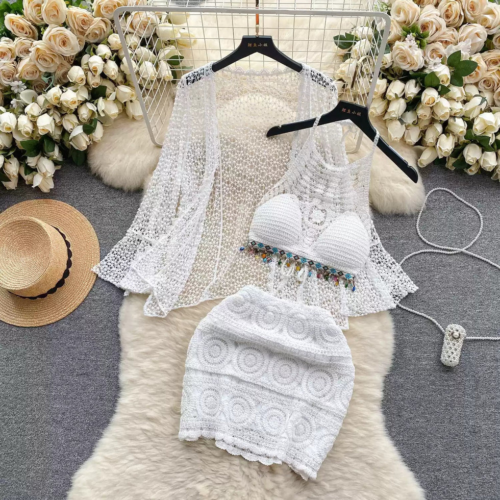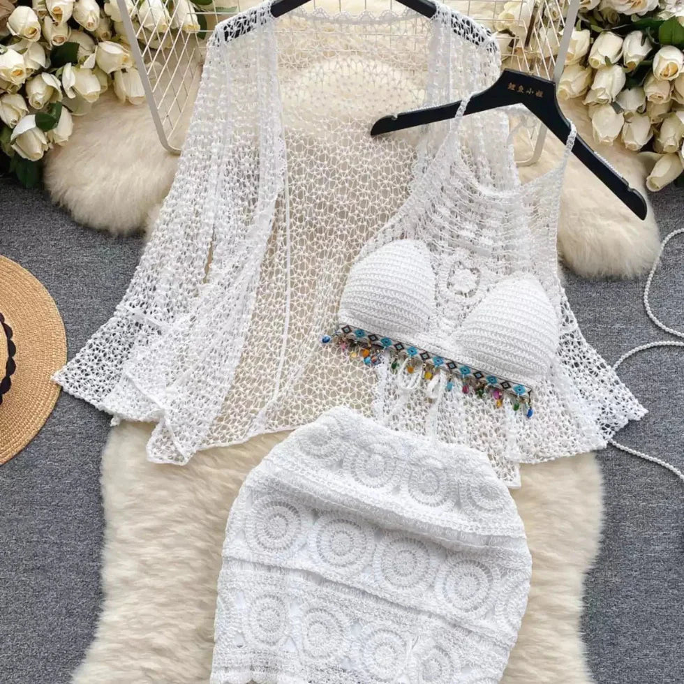 Three Piece Crochet Beach Resort Set